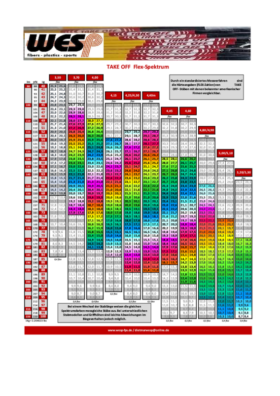 Entlang einer Farbe, können Sie sich orientieren, welcher Stab bei größerer bzw. kleinerer Länge die gleiche Härte hat.